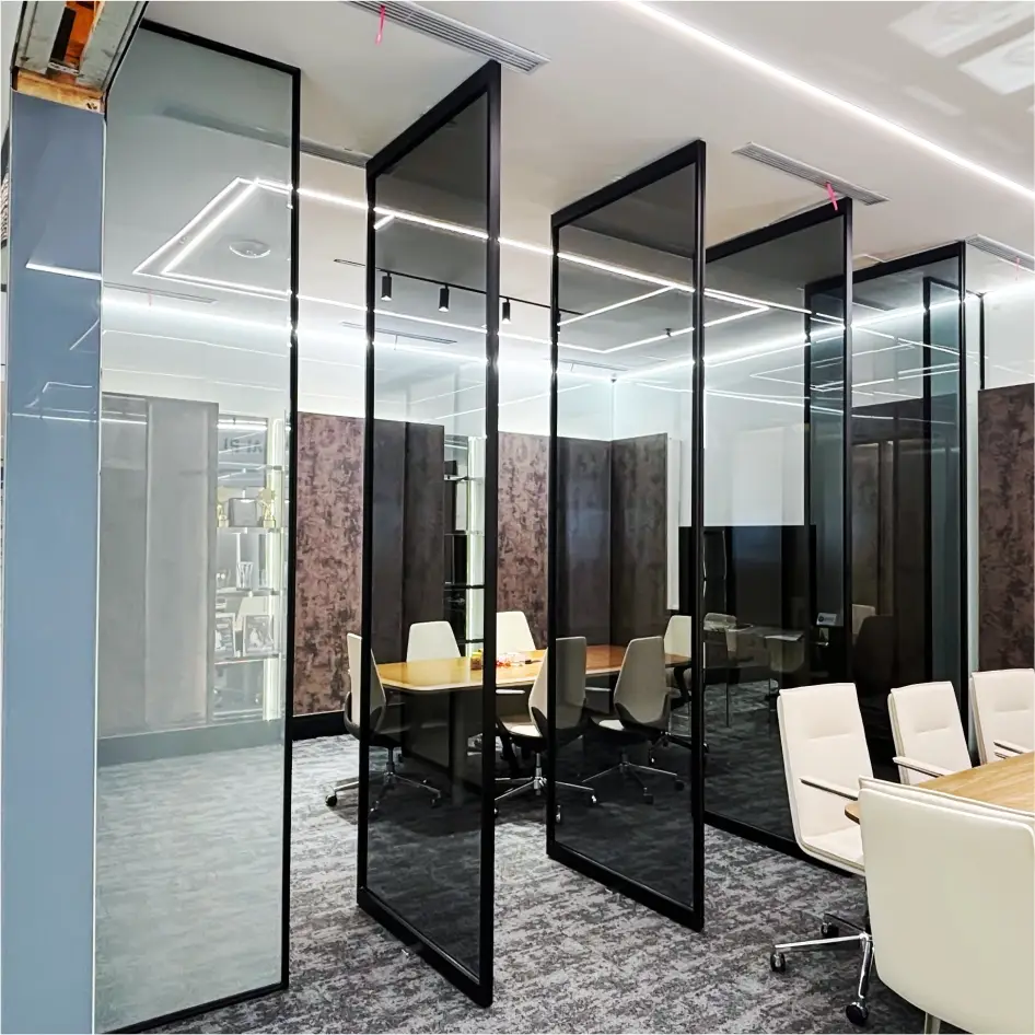 Minimalist glass door with aluminum frame, ideal for lightweight and modern architectural designs. Supports laminated glass, including acoustic glass for optimal sound insulation. Creates an open and spacious feel, perfect for contemporary interiors. Can be used as an interior partition for seamless transitions between spaces or to highlight specific views.