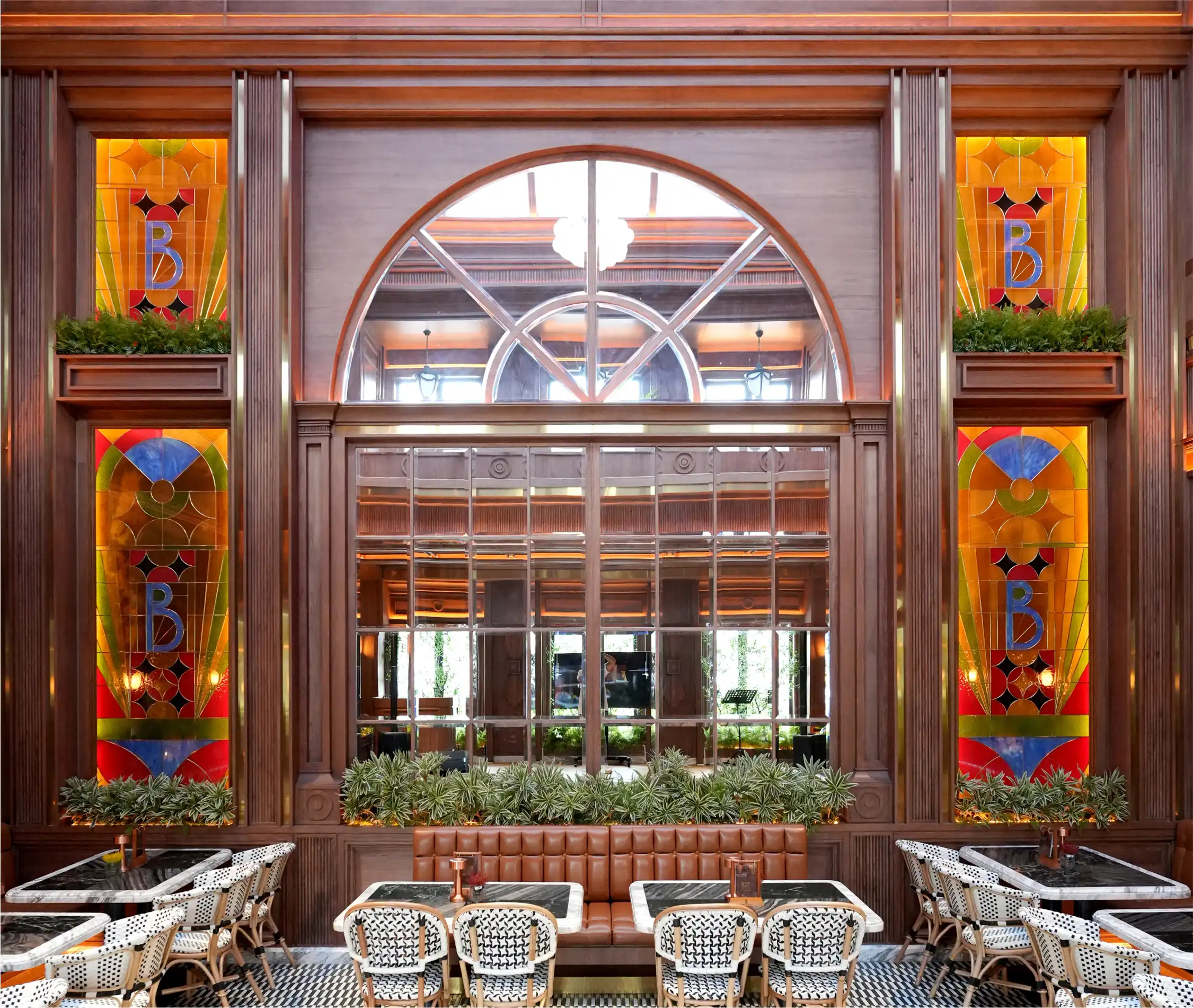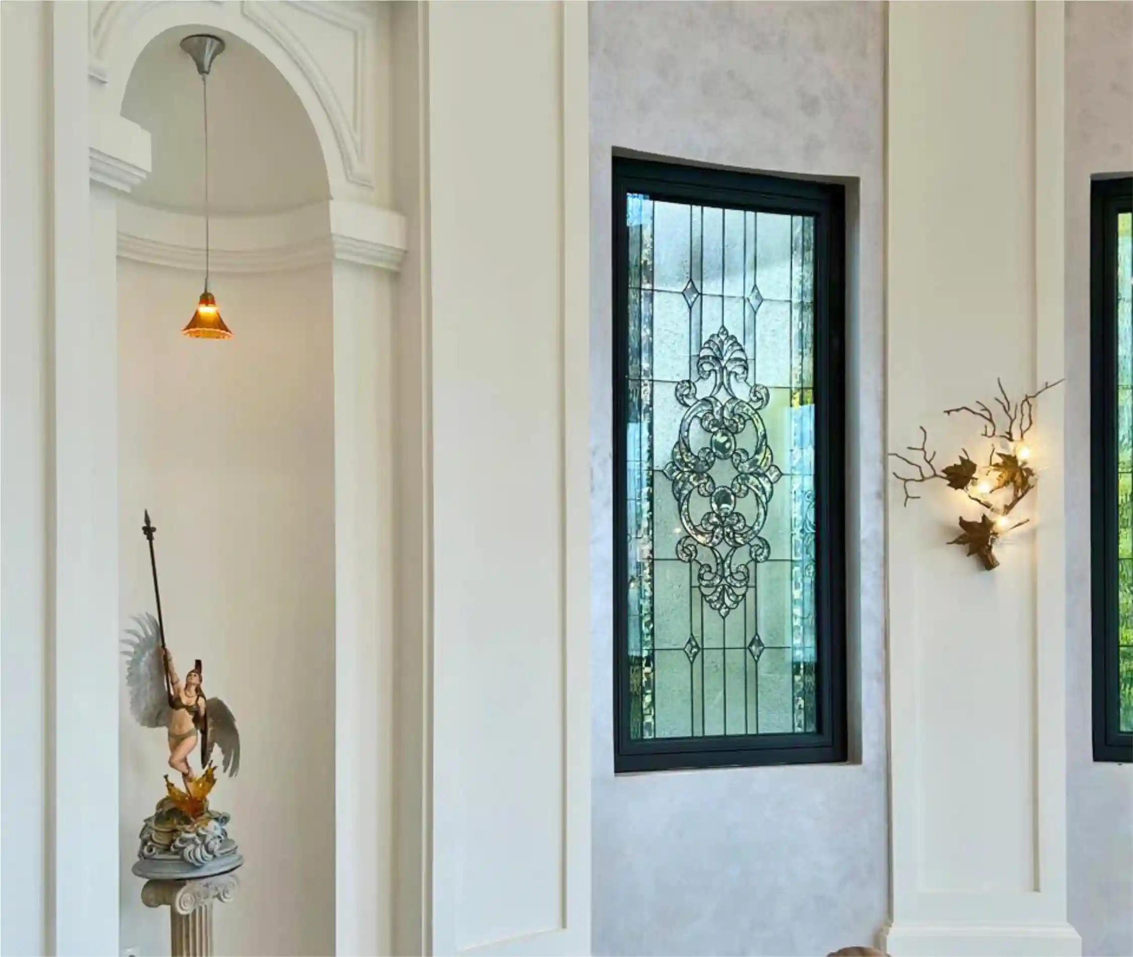 Dapat dibuat secara custom dengan motif dan warna yang elegan dan bernilai seni — cocok untuk hunian mewah, hotel, atau tempat ibadah. Menghasilkan efek cahaya dramatis yang tahan lama, menambah keindahan arsitektur sekaligus menjadi karya seni yang hidup di setiap ruangan.