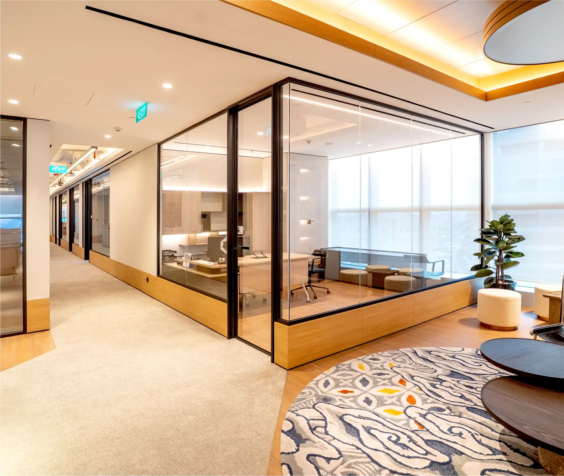 Bisa diaplikasikan sebagai sistem partisi kantor, ruang meeting, area kerja modern, maupun tata ruang komersial yang mengutamakan desain ramping dan efisiensi ruang.