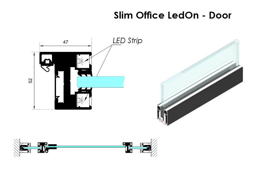 Sistem partisi dan pintu L.E.D merupakan solusi efektif untuk menciptakan ruang privat dari area terbuka. Kombinasi unik antara rangka, kaca, dan pencahayaan L.E.D membuat sistem Slim Office Led dari Roxyglass cepat dan mudah dipasang.